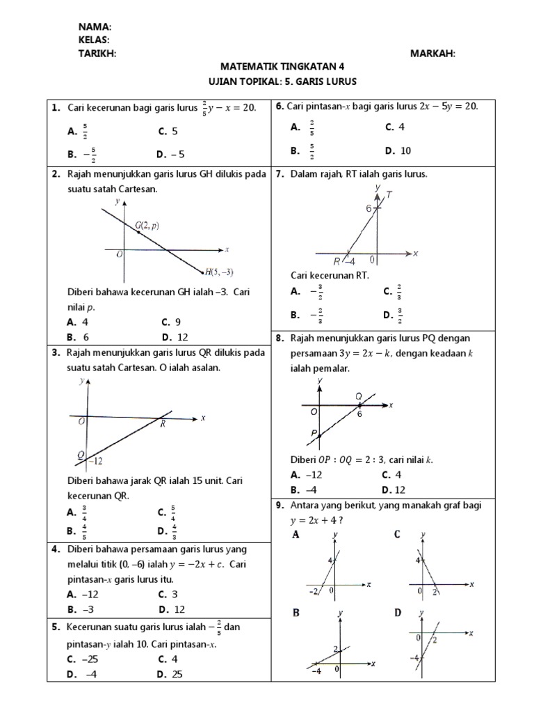Kuiz Matematik Tingkatan 4 Garis Lurus Pdf